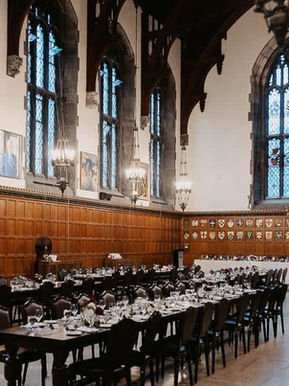 The Hart House Great Hall delivers a classic dark academia aesthetic with its heavy oak accents, leaded glass windows, and historic collegiate charm. Wedding photography in this space focuses on embracing the dramatic, moody shadows to produce elegant, timeless, and warmly lit imagery.